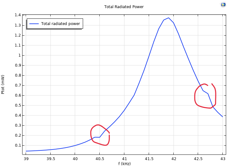 I have noticed that after making some geometric changes, artefacts/spikes appear in the Total Radiated Power Spectrum (see figures). Has anyone observed similar behavior, or can anyone explain what might be causing this?