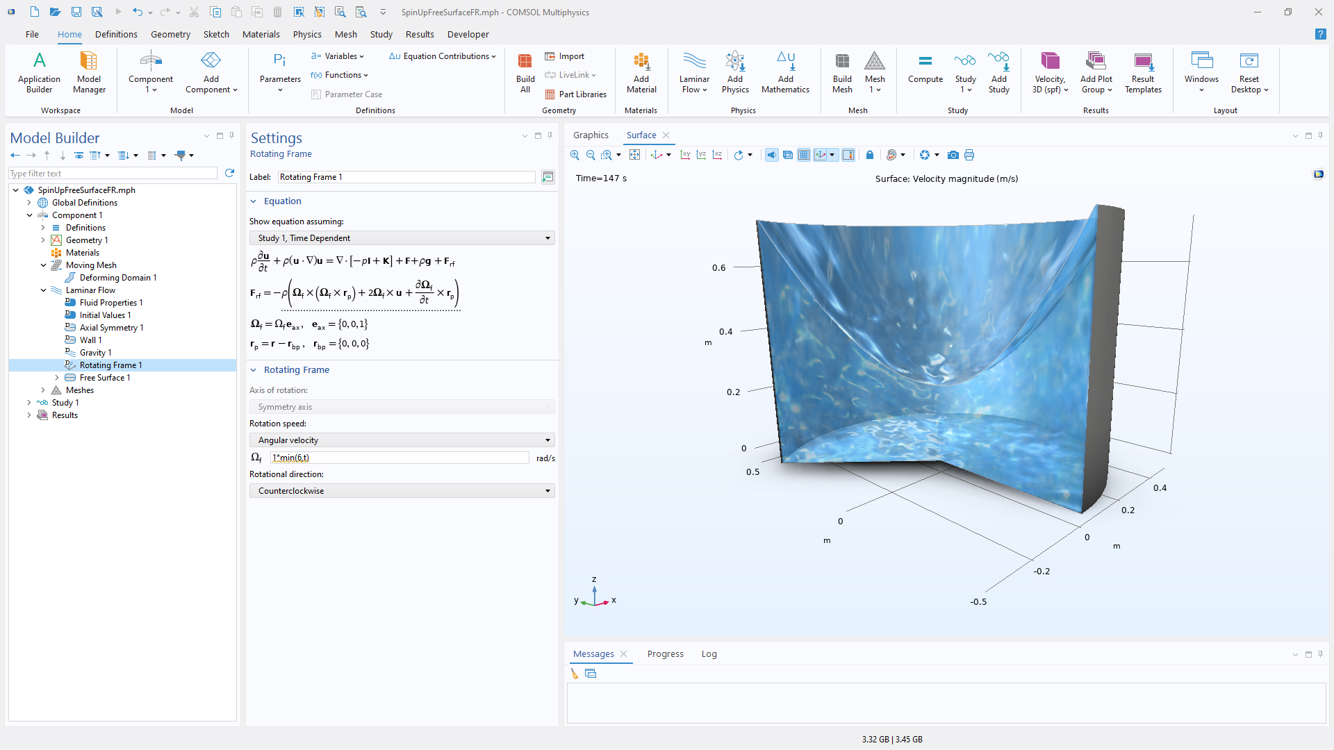 The new Rotating Frame feature expresses fluid flow equations relative to a stationary or time-dependent rotating frame, providing an inexpensive alternative to rotating domains without having to add equations. It also offers options for using a reduced pressure formulation or including the hydrostatic pressure approximation for the centrifugal force.
